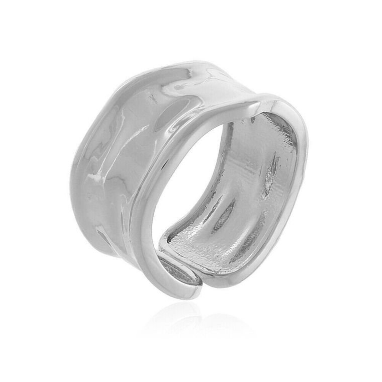 Este anel, uma moderna semijoia, destaca-se por seu design orgânico e volumoso, que simula formas fluidas e naturais, como se moldadas à mão. Sua superfície é predominantemente lisa e polida, com ondulações suaves que conferem à peça um aspecto escultural e contemporâneo.