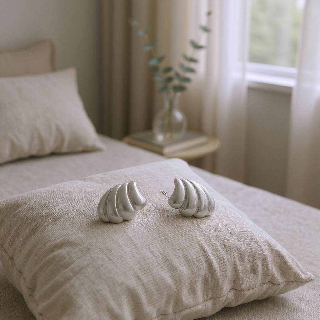 Brinco Asa trabalhado liso com Banho de Ródio.